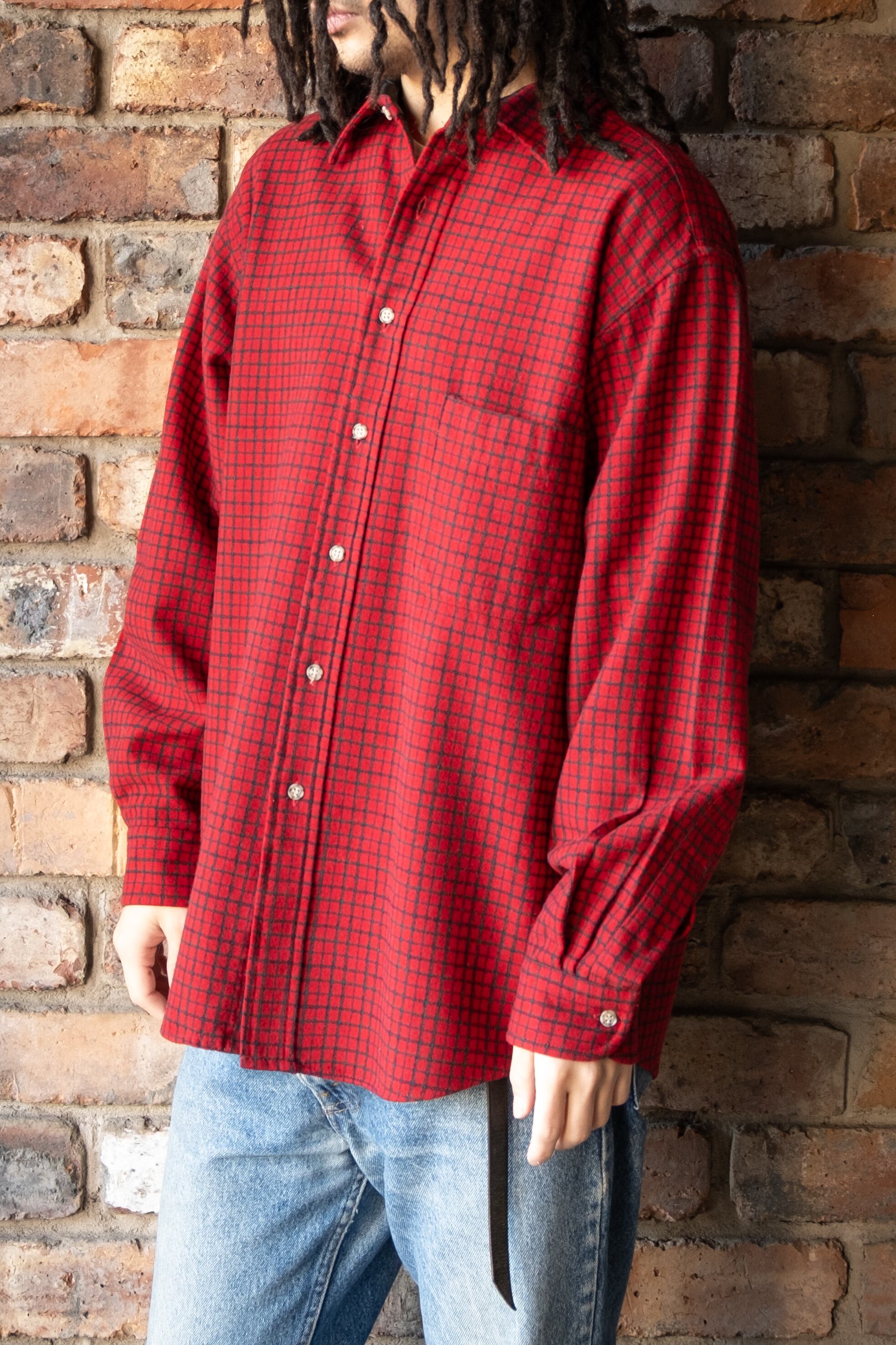 個人的にも好んで着用する赤チェックですが、