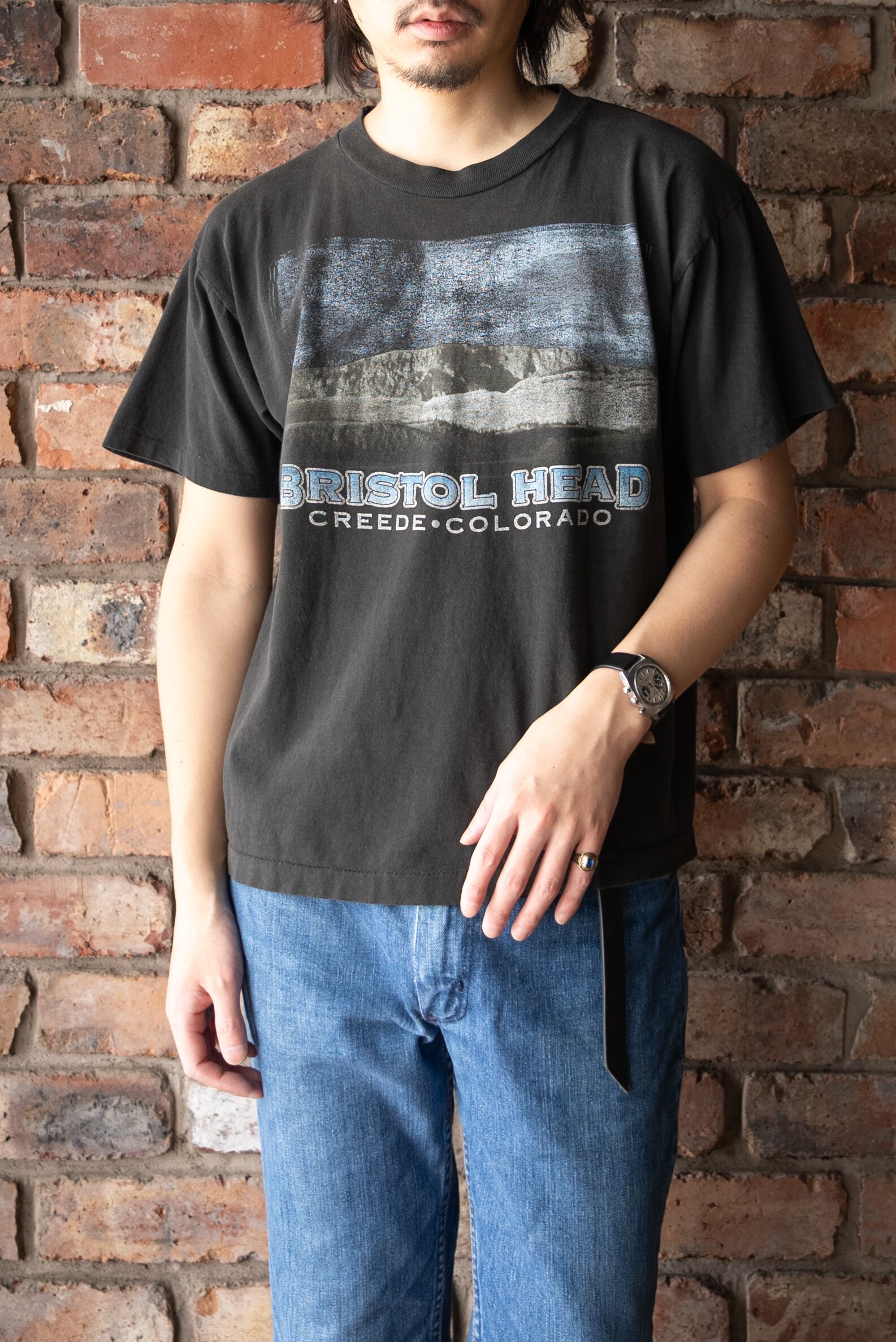 100%cottonの黒Bodyに擦れたBlue