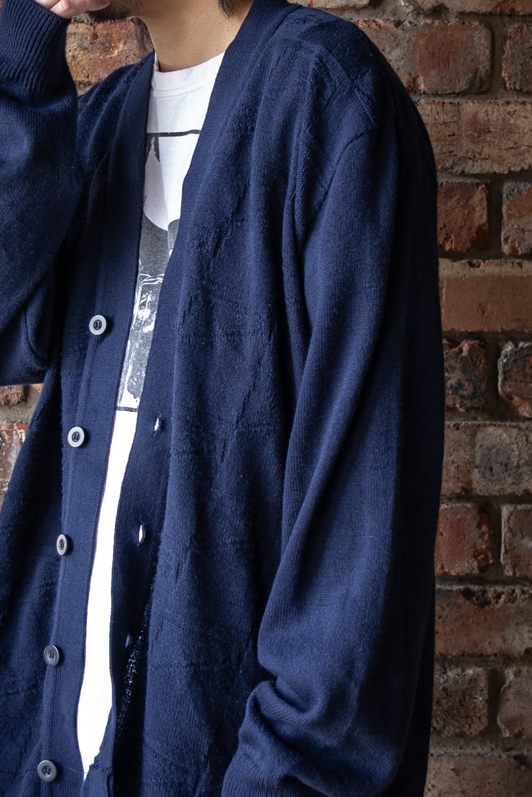 少し着丈が長めなのでガウンとカーディガンの