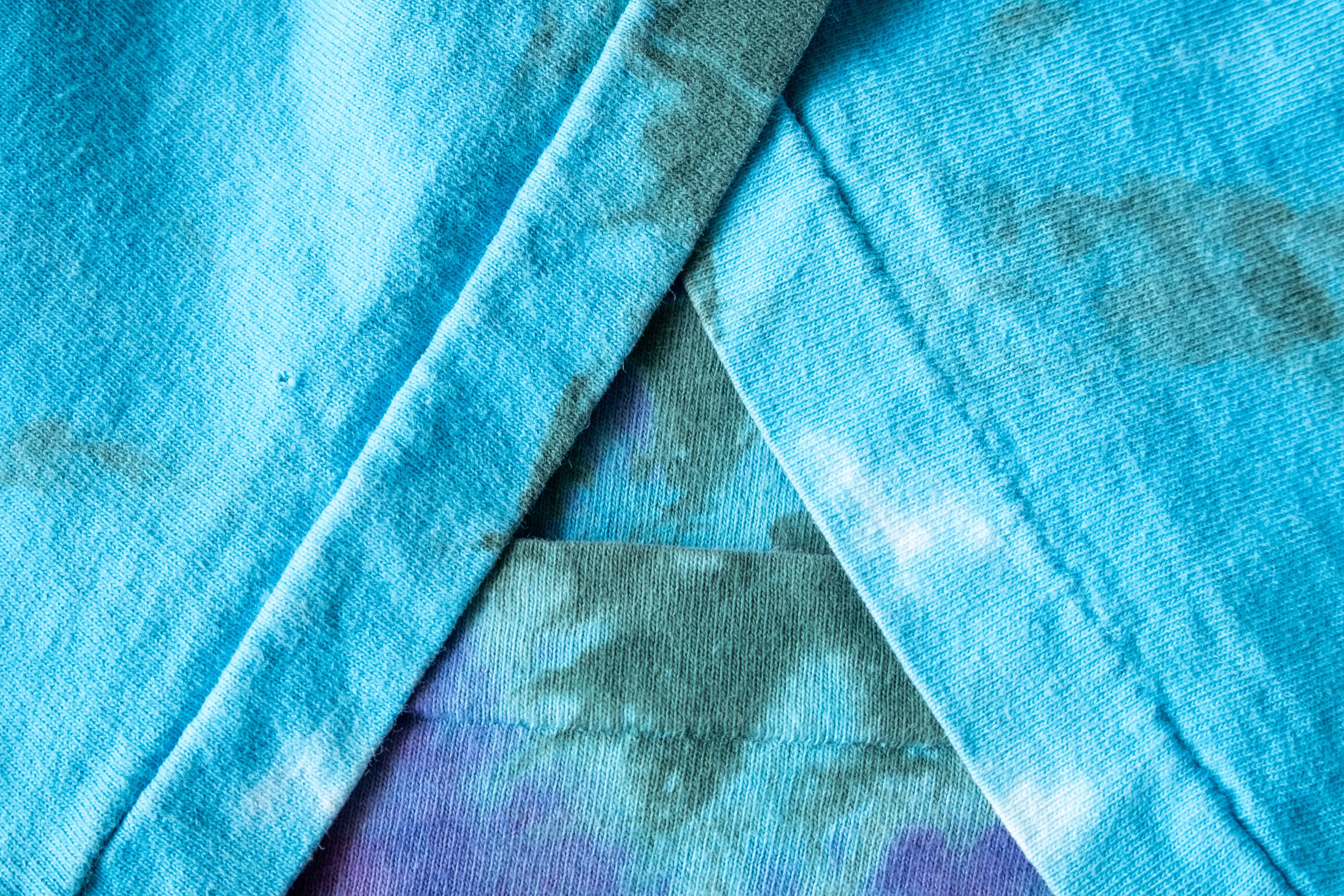 水色と紫の寒色で纏められたタイダイ柄は